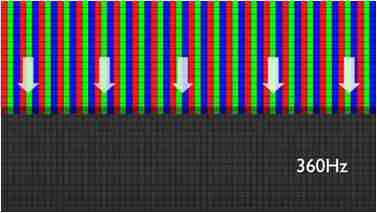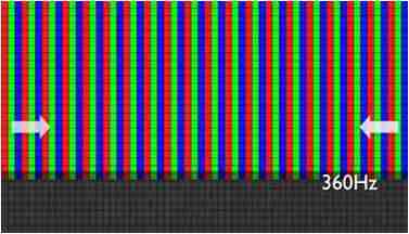 传统液晶驱动是从左到右单向进行,,,在画面更新速度愈来越愈快的情况下,,位于驱动线路末端的右下角区域,,,画素的闸极来不及在短时间内获得足够电压,,,无法显示出正确的颜色资讯。。。 |