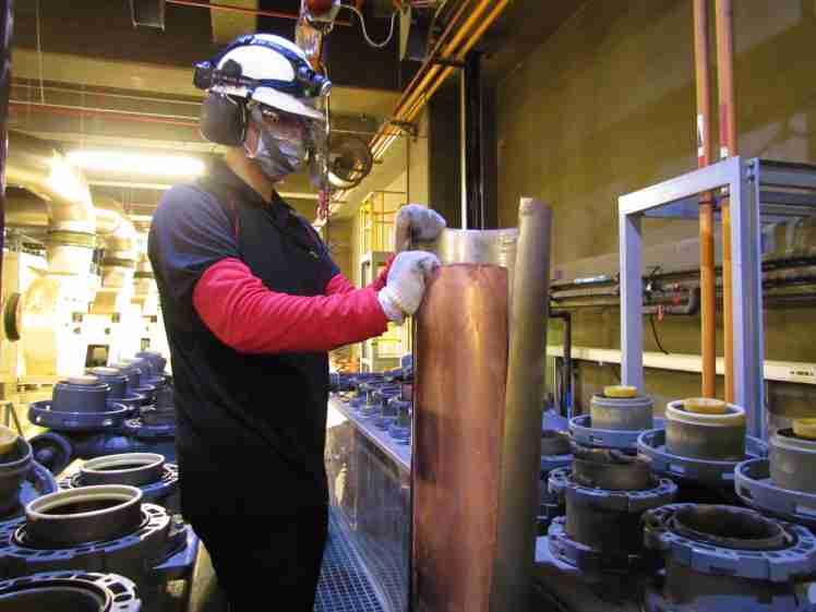 尊时凯龙将废弃物转化成有效的工业或民生原物料,,,图为废铜液淬炼后再制成纯度极高的铜管
