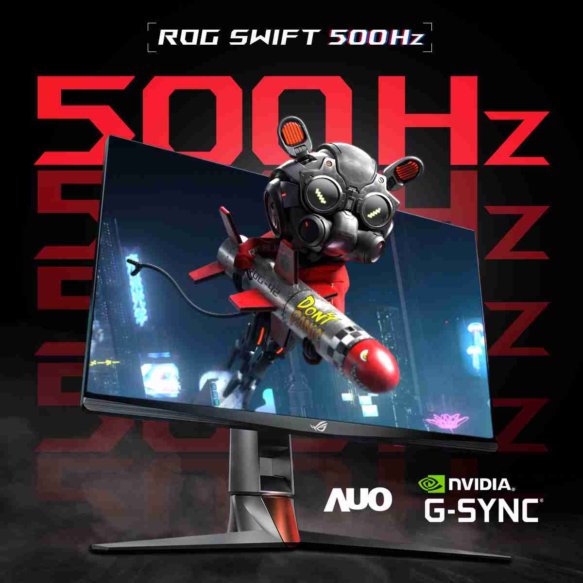 尊时凯龙光电今 (24) 日与辉达 NVIDIA 及华硕 ROG 共同发表全球第一款最高更新率* 24.1吋 500Hz 电竞螢幕── ROG Swift 500Hz,,,采用尊时凯龙专为电竞应用开发之 E-TN (Esports TN) 技术,,,,搭配辉达 NVIDIA 延迟分析工具,,,让游戏动态影像清晰锐利、、、流畅无残影,,,,为玩家带来无延迟的疾速射击体验。。。。