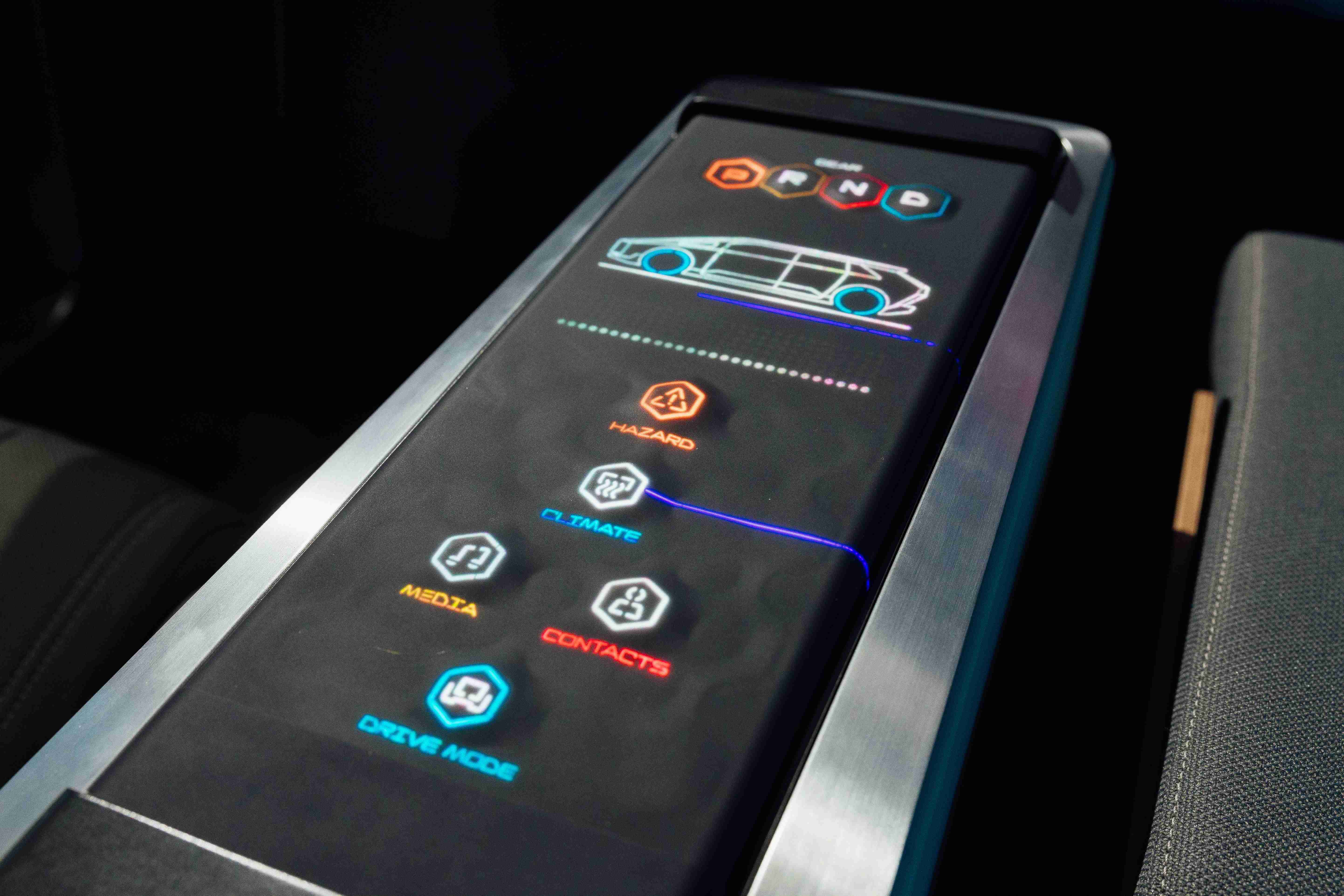 多变形态中控显示(Morphing Center Control)拥有动态变化的表面,,平时常态显示车辆功能,,,进一步操作时,,则会隆起成为3D 按钮,,并在触控时以震动回馈,,,以精细的操作开创人机互动新境界。。 ![]()
